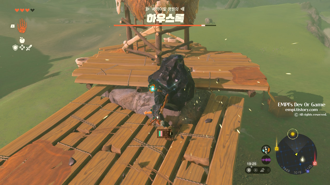 도착하면 공격력이 높은 무기 또는 망치로 돌덩이를 마구 때리자. 그럼 하우스록이 깨어 난다.