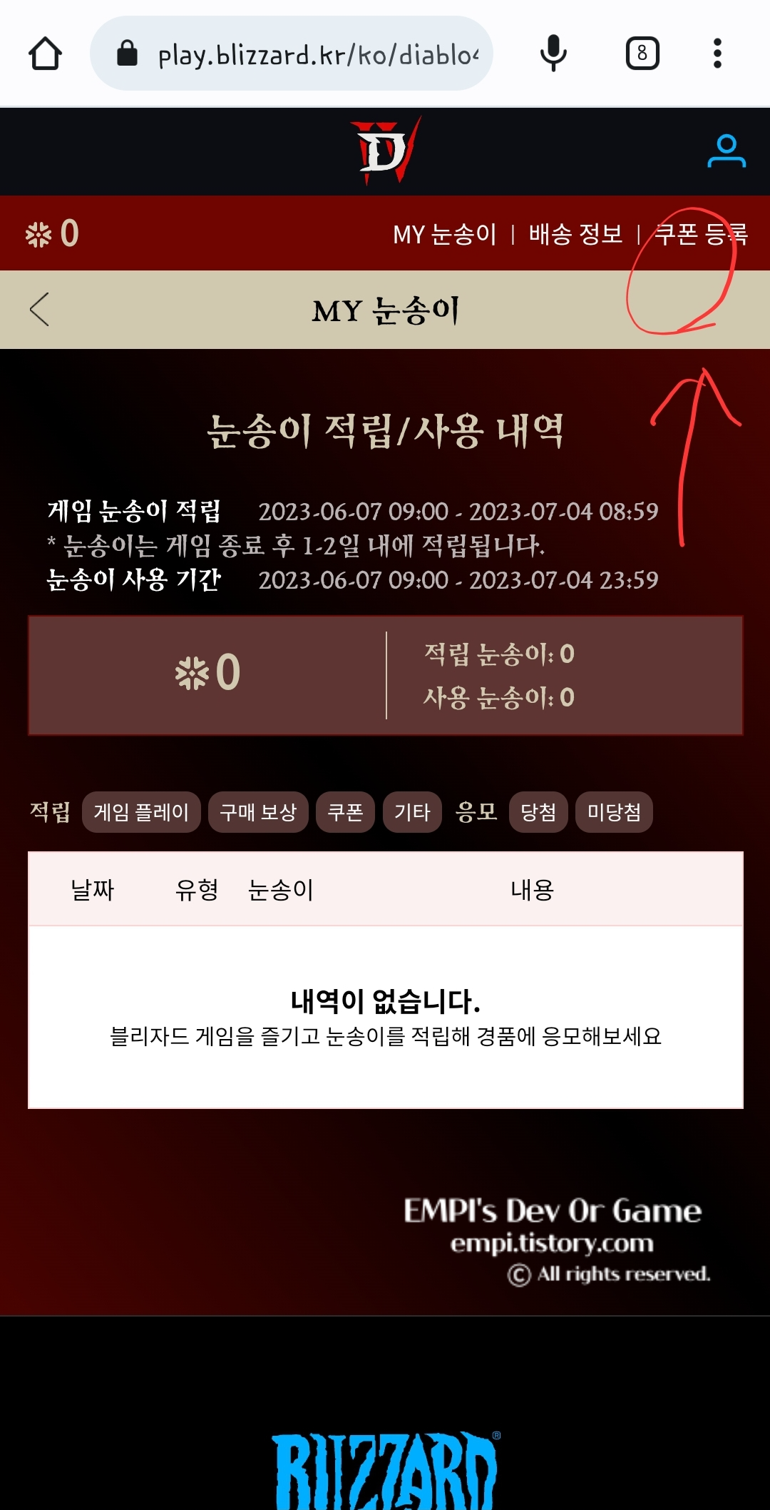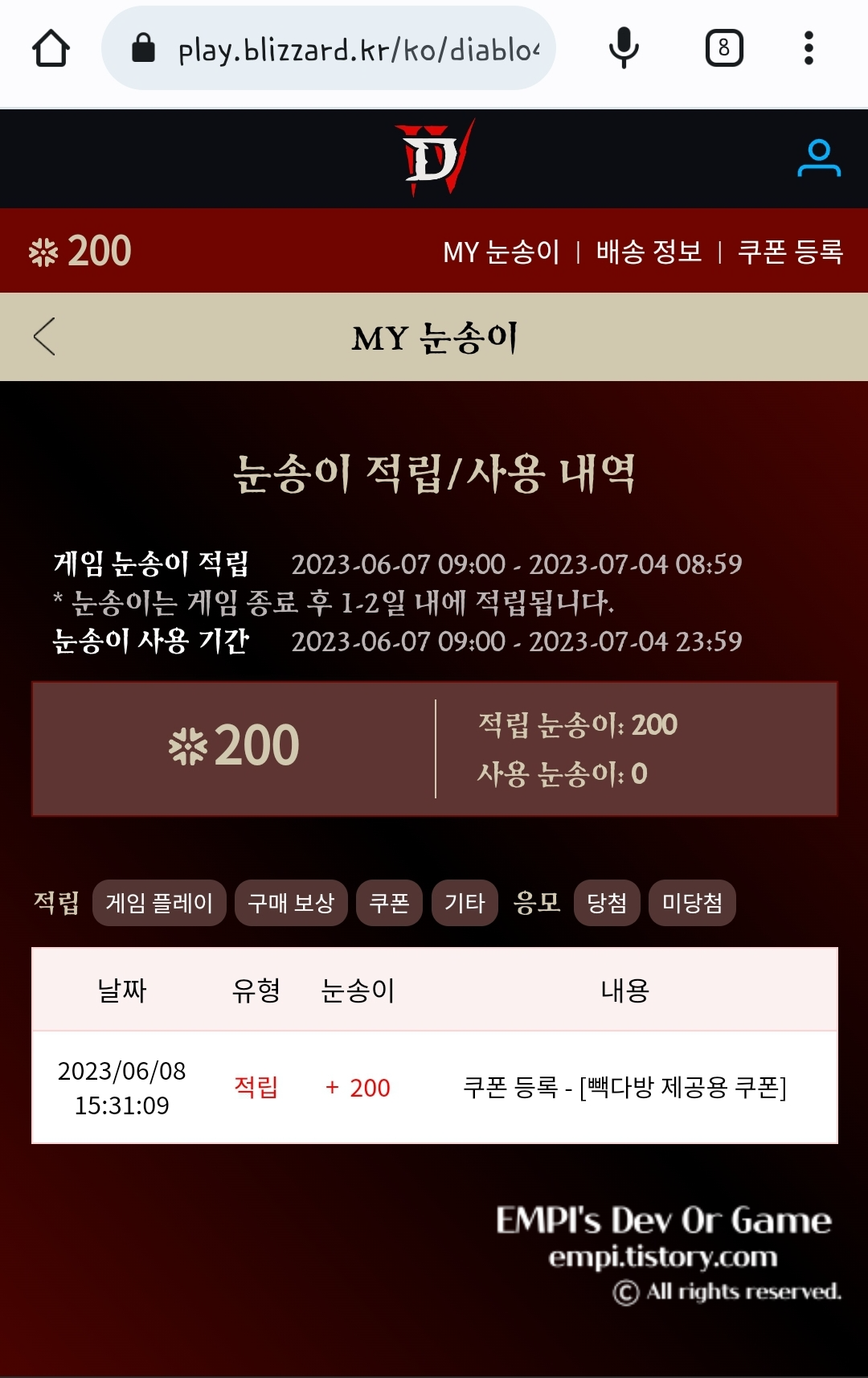 디아블로 4 사건 조사의견서 이벤트 참여 후 눈송이 포인트 획득