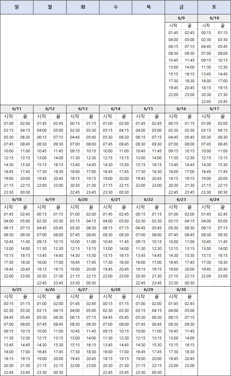 노란색 - 짝수 시간