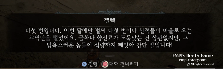 디아블로 4 대화 스킵 방법은 PS4, PS5, XBOX는 동그라미 버튼이고, PC 기준은 ESC 버튼 입니다. 그런데 PC는 간혹 가다가 스킵이 안될 때가 있는데, 이럴때는 알트탭으로 바탕화면으로 나갔다 오면은 ESC키가 정상적으로 작동합니다.