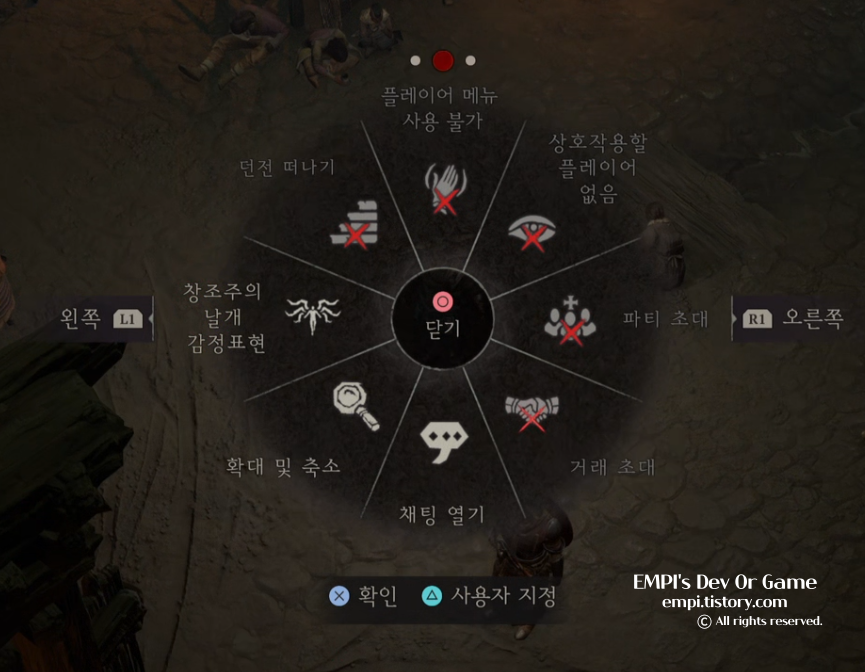 디아블로 4 에서 던전 쉽게 나가는 방법은 던전에서 플레이 하다가 포털을 타고 마을로 가는게 아니라, 던전만 나가고 싶으면 PS4, PS5, XBOX는 왼쪽에 방향키 위로 버튼을 클릭해서 던전을 나가면 되고, PC는 액션 휠 버튼을 이용해서 던전을 나가면 됩니다. 그럼 마을로 안돌아가고 던전만 나오게 됩니다.