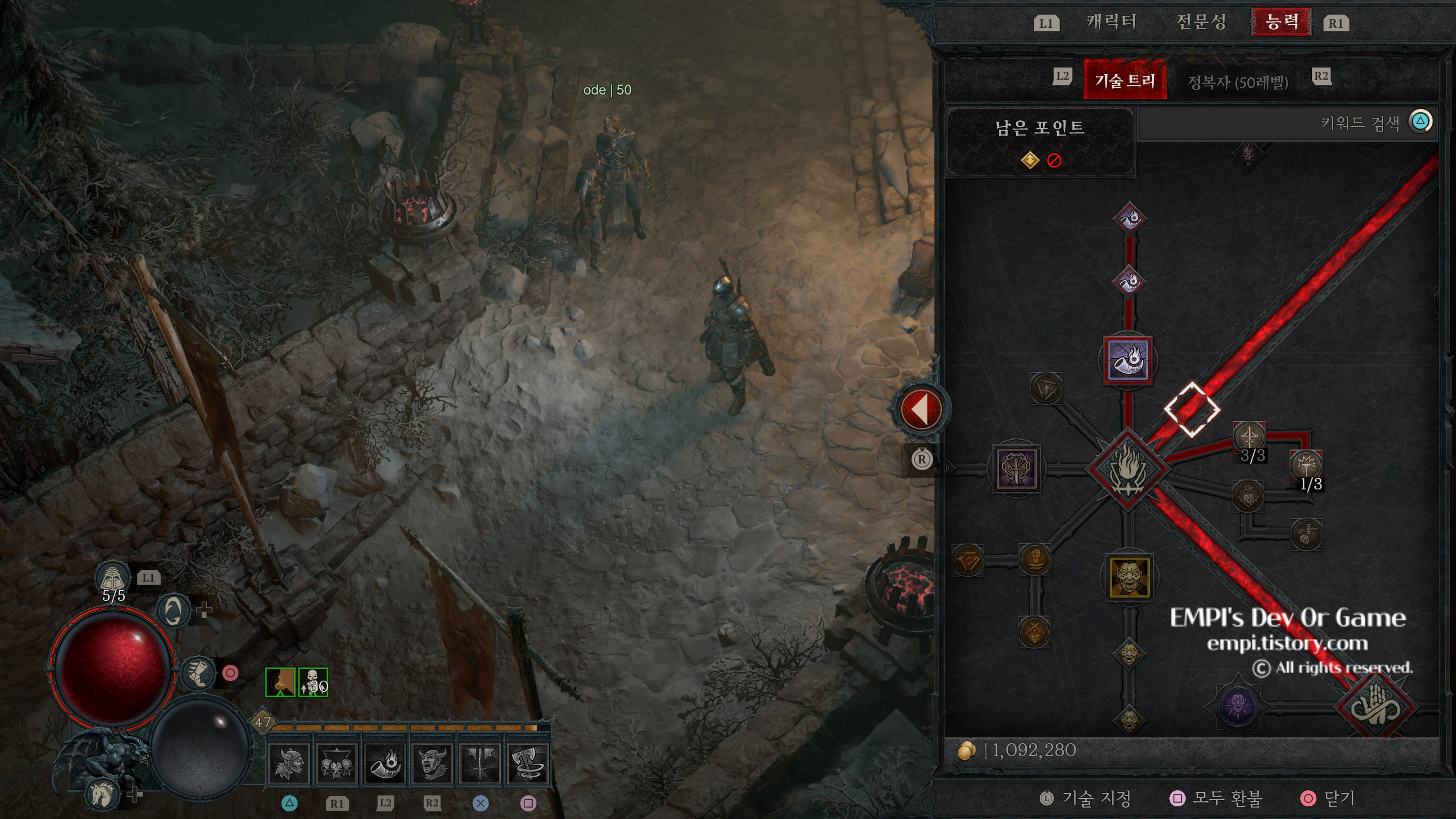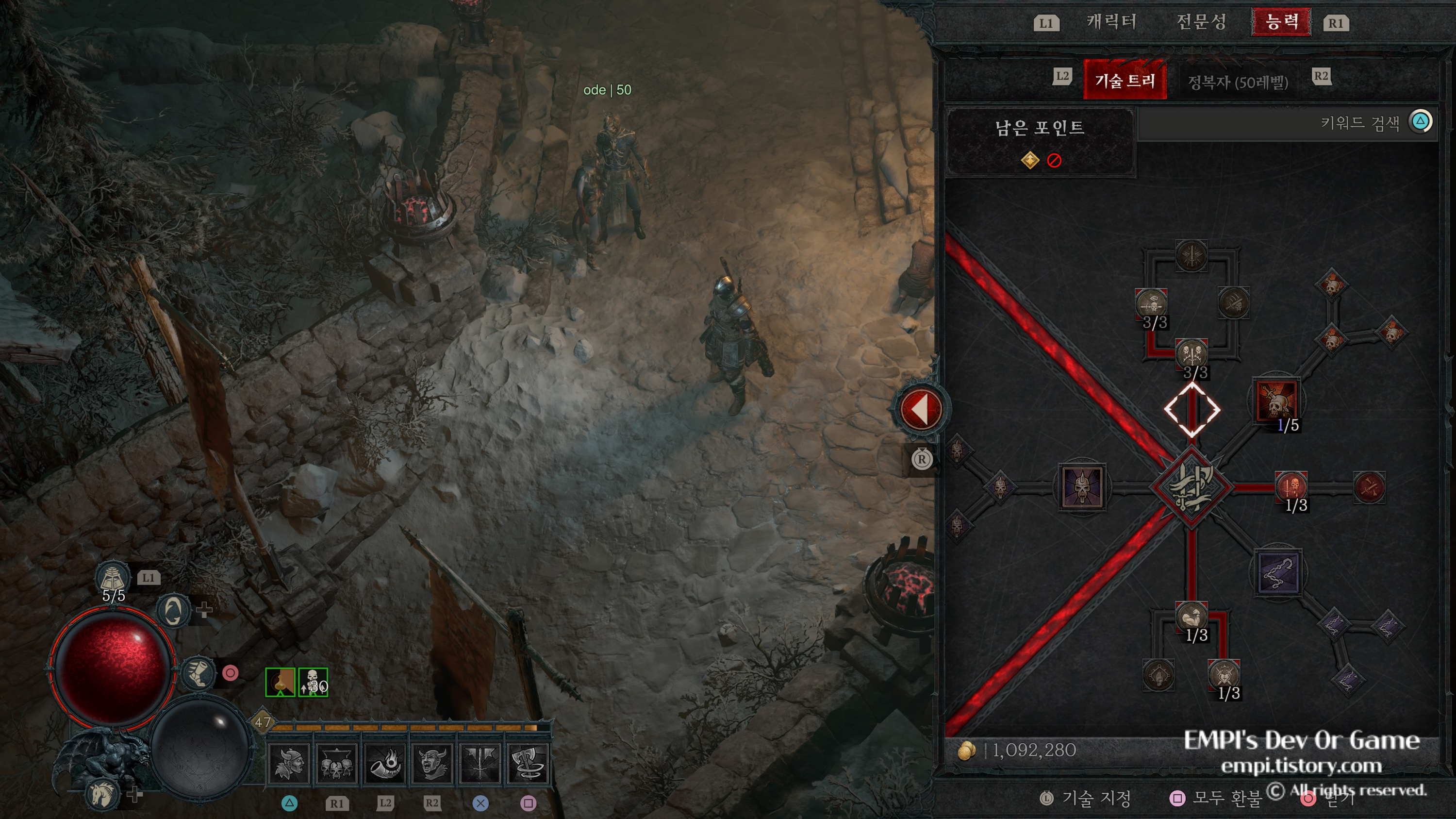 아래 스킬트리는 렙 47 기준 스킬트리 입니다. 참고해주세요.