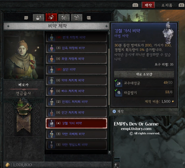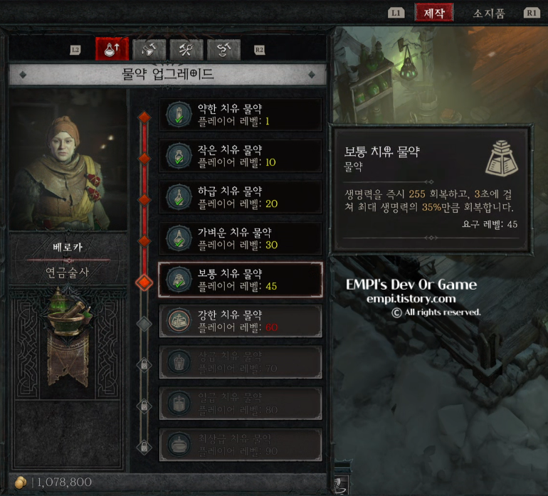 ▷ 디아블로4 치유 물약 업그레이드 및 치유 횟수 증가 방법