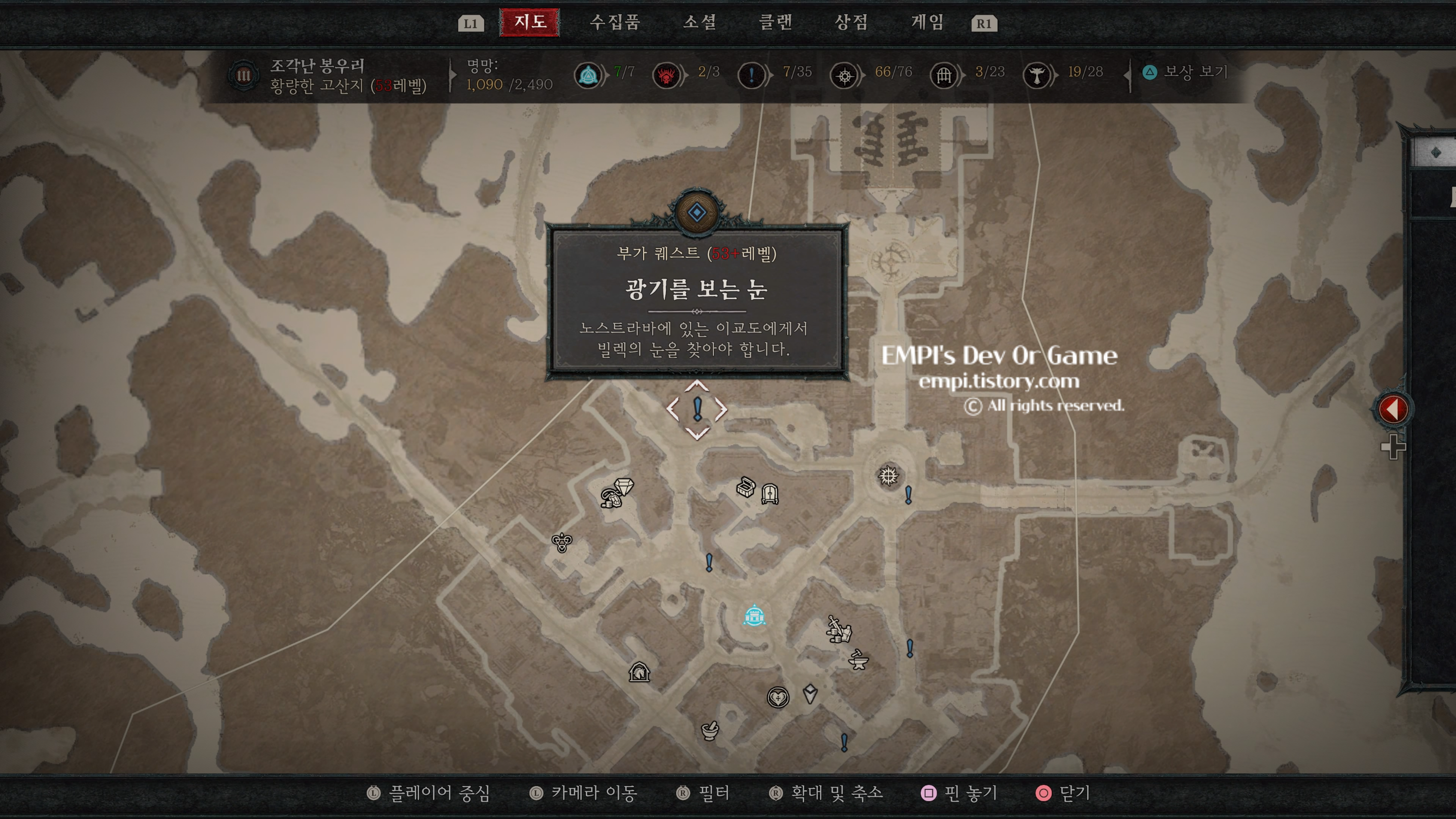 부가 퀘스트(서브퀘스트)를 악몽에서 하려고 모험 난이도에서는 거의 하지 않았습니다. 왜냐면 부가 퀘스트를 악몽에서 수행해야 좋은 템을 얻을 수 있다고 합니다.