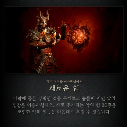 디아블로 4 악의 종자 시즌에서는 새로운 힘인 악의 심장을 이용 할 수 있습니다. 악의 심장은 30종류가 있습니다.