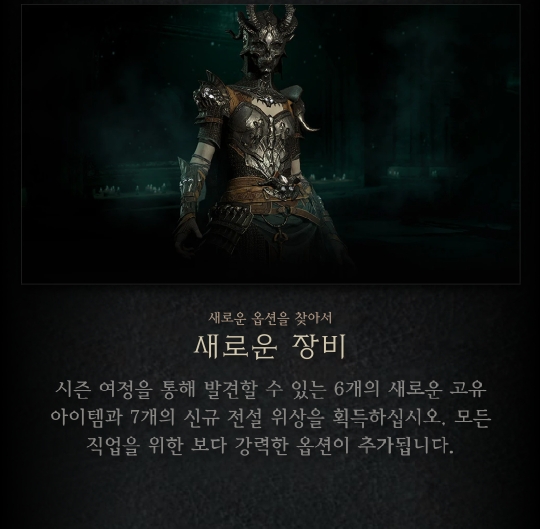 디아블로 4 악의 종자 시즌에서는 6개의 새로운 고유 아이템과 7개의 신규 전설 위상을 획득 가능합니다. 모든 직업을 위한 보다 강력한 옵션이 추가 된다고 합니다.
