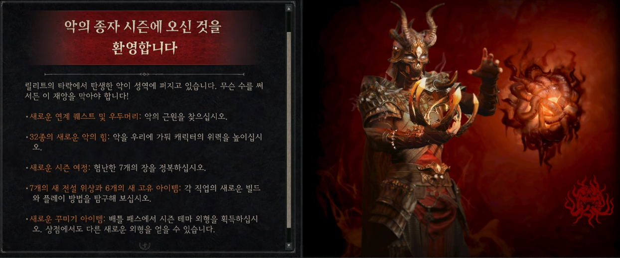 디아블로 4 악의 종자 시즌 특징으로는