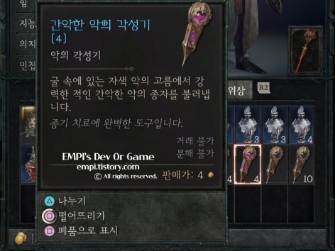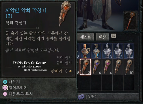 악의 굴 깊이 들어가면 진노한 종양을 볼 수가 있고 여기서 진노한 악의 각성기를 사용합니다.