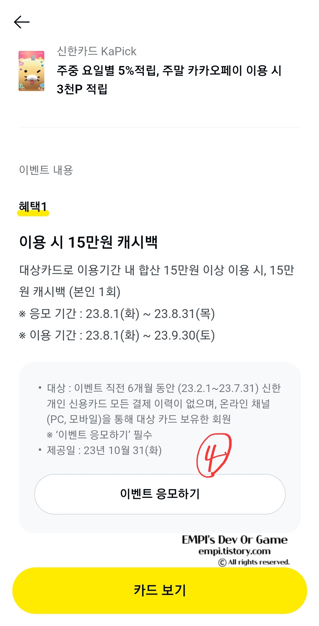이벤트 응모하기가 완료 되면, 카드 보기를 합니다.