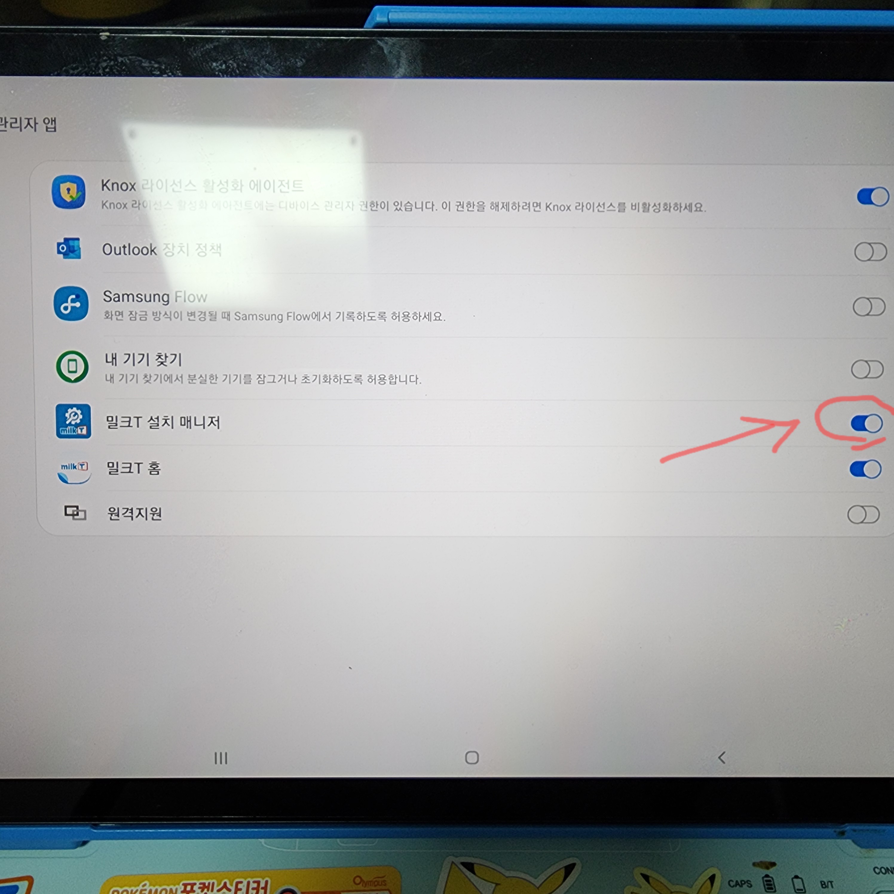 밀크T 관련된건 삭제가 됐고, 이제는 Knox 라이선스 활성화 에이전트를 비활성화 합니다.