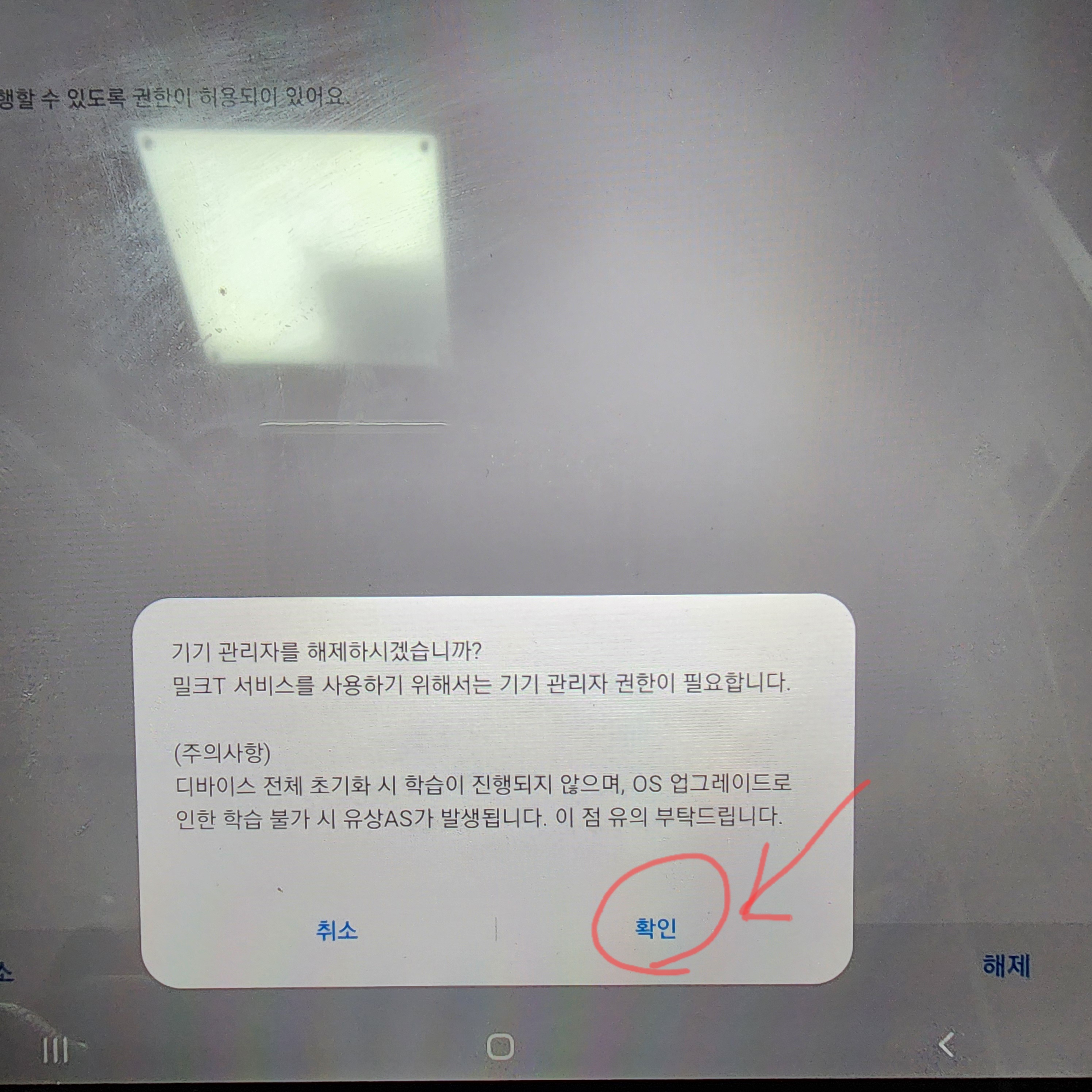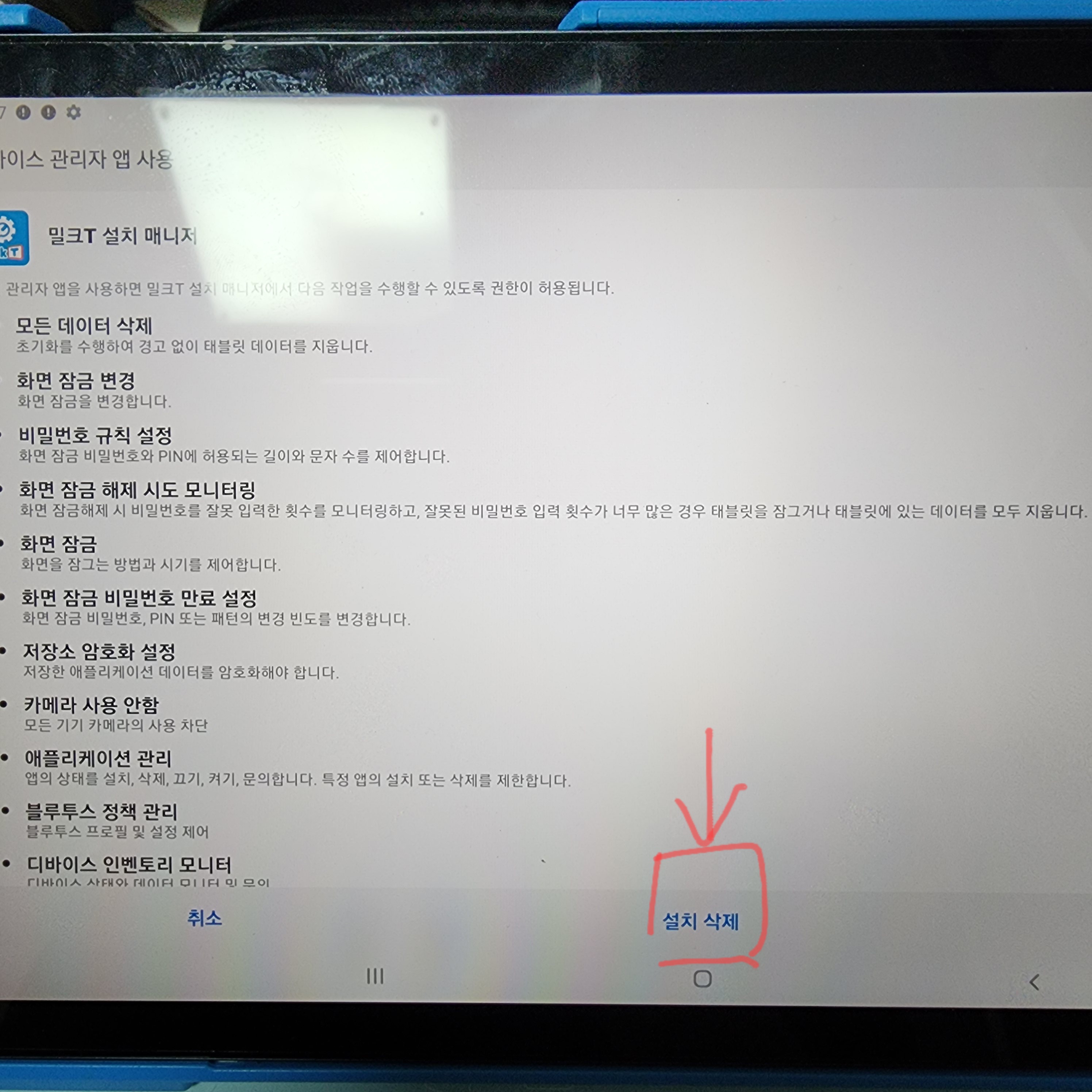 밀크티(밀크T)가 설치된 갤럭시탭은 그냥 쓸수가 없습니다. 밀크티를 삭제하고 갤럭시탭 공장 초기화를 해야지만 일반 갤럭시탭 처럼 사용이 가능합니다.
