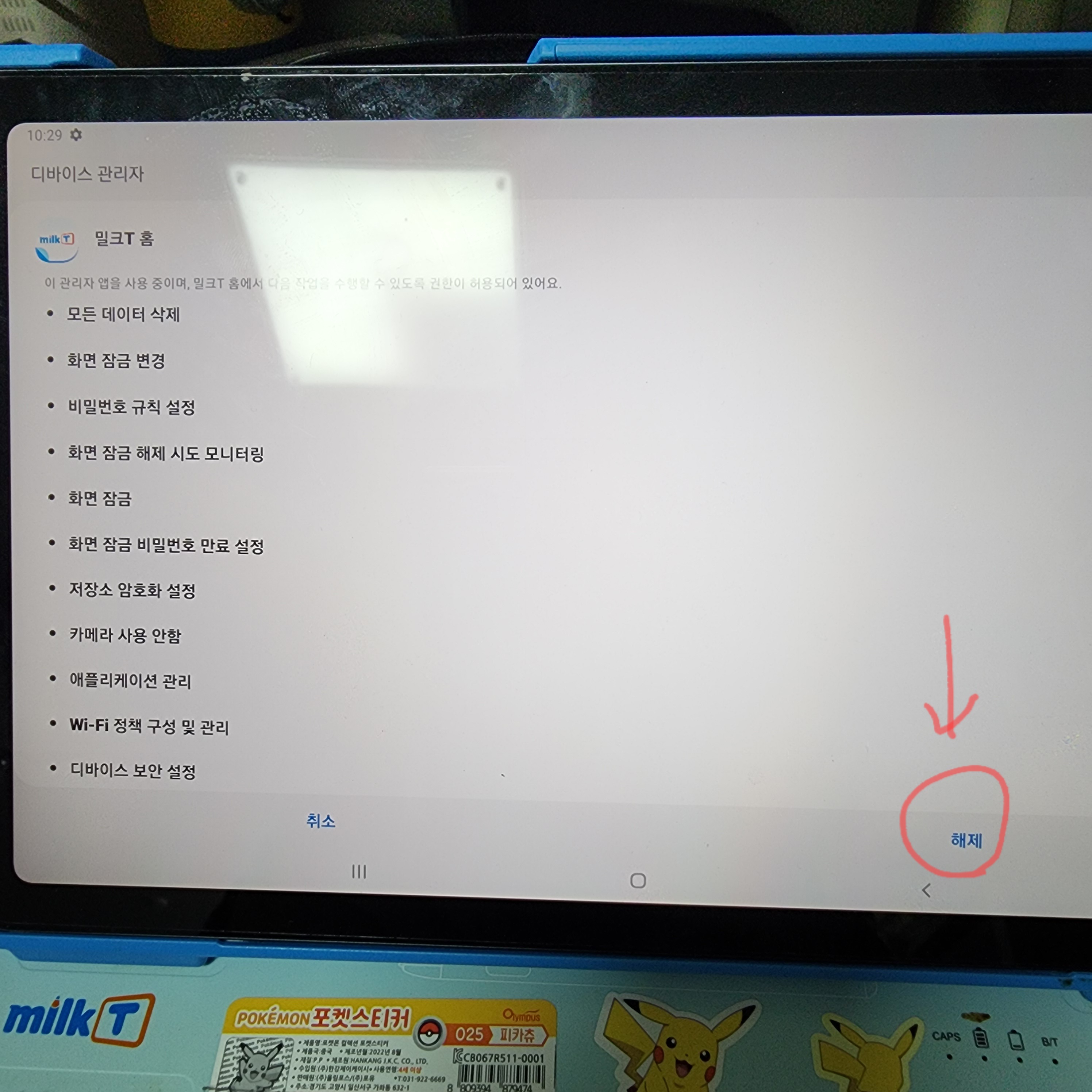 밀크T 갤럭시탭을 일반 갤럭시탭 s6 lite로 변경하기 위한 단계