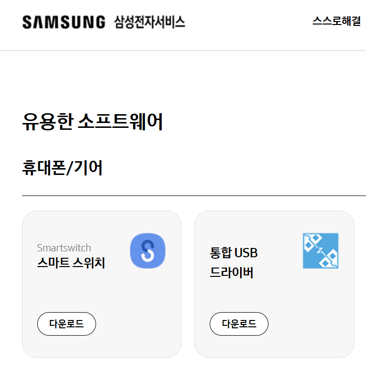 삼성전자서비스 다운로드 자료실에 접속합니다.