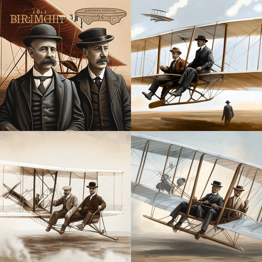 1903년 노스캐롤라이나주 키티호크에서 최초의 동력 비행을 하는 라이트 형제의 흑백 사진 - A sepia-toned photo of Leonardo da Vinci, painting the Mona Lisa, 1519