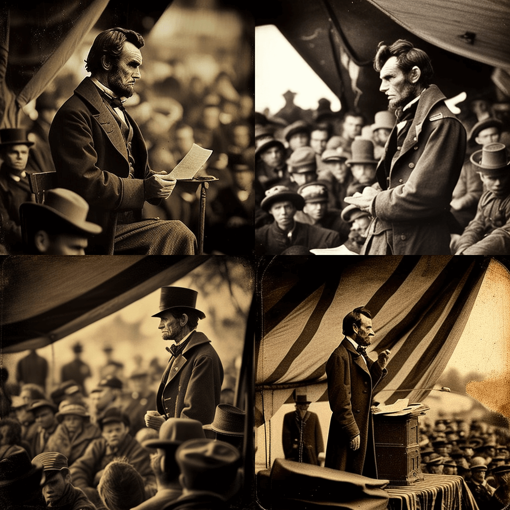 헨리 8세의 흑백 사진, 로마 카톨릭 교회에서 탈퇴하기 위한 수장령에 서명, 1534년 - A sepia-toned photo of Abraham Lincoln, delivering the Gettysburg Address during the American Civil War, 1863