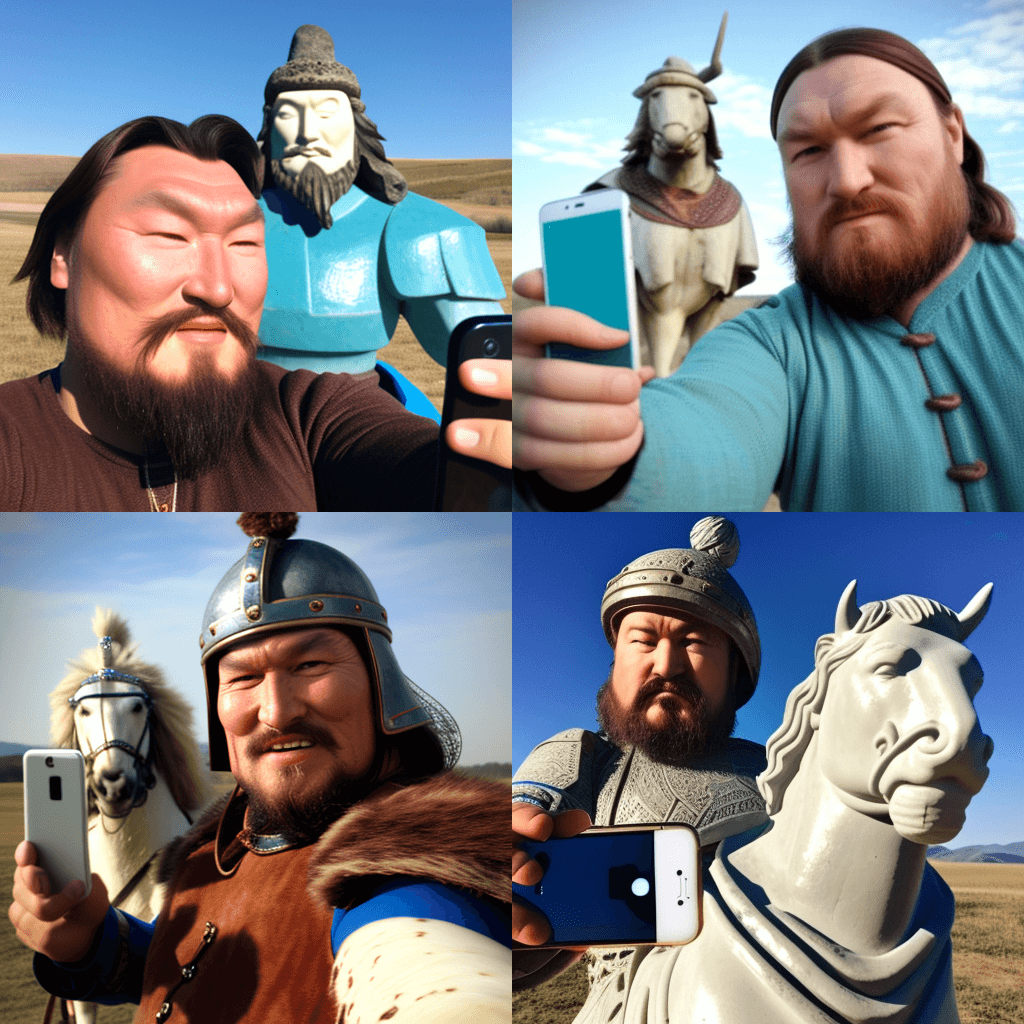 몽골 평원에서 칭기즈칸과 함께한 시간여행자의 셀카