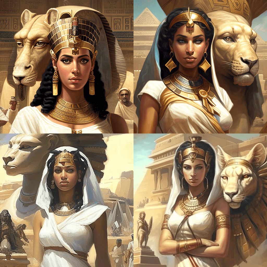 *프롬프트에서 참고하세요. 저는 인종이나 피부색을 제안하지 않았습니다. AI가 클레오파트라의 모습을 이렇게 생각한다고 생각합니다*
