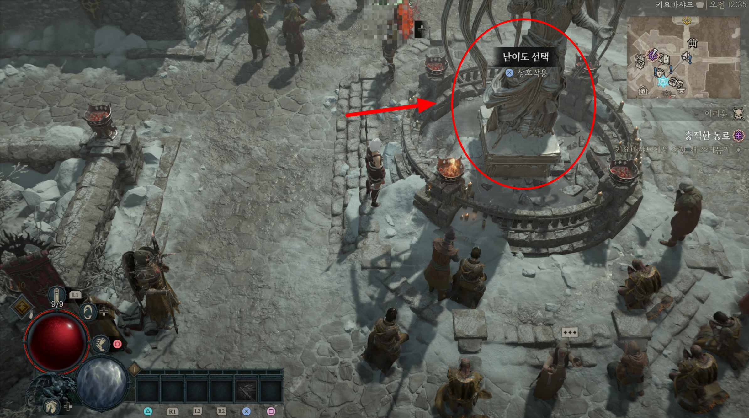디아블로4 게임 플레이 중에 난이도 변경 방법은 키요바샤드에 있는 세계 단계 조각상을 통해서 난이도 변경 가능하다.