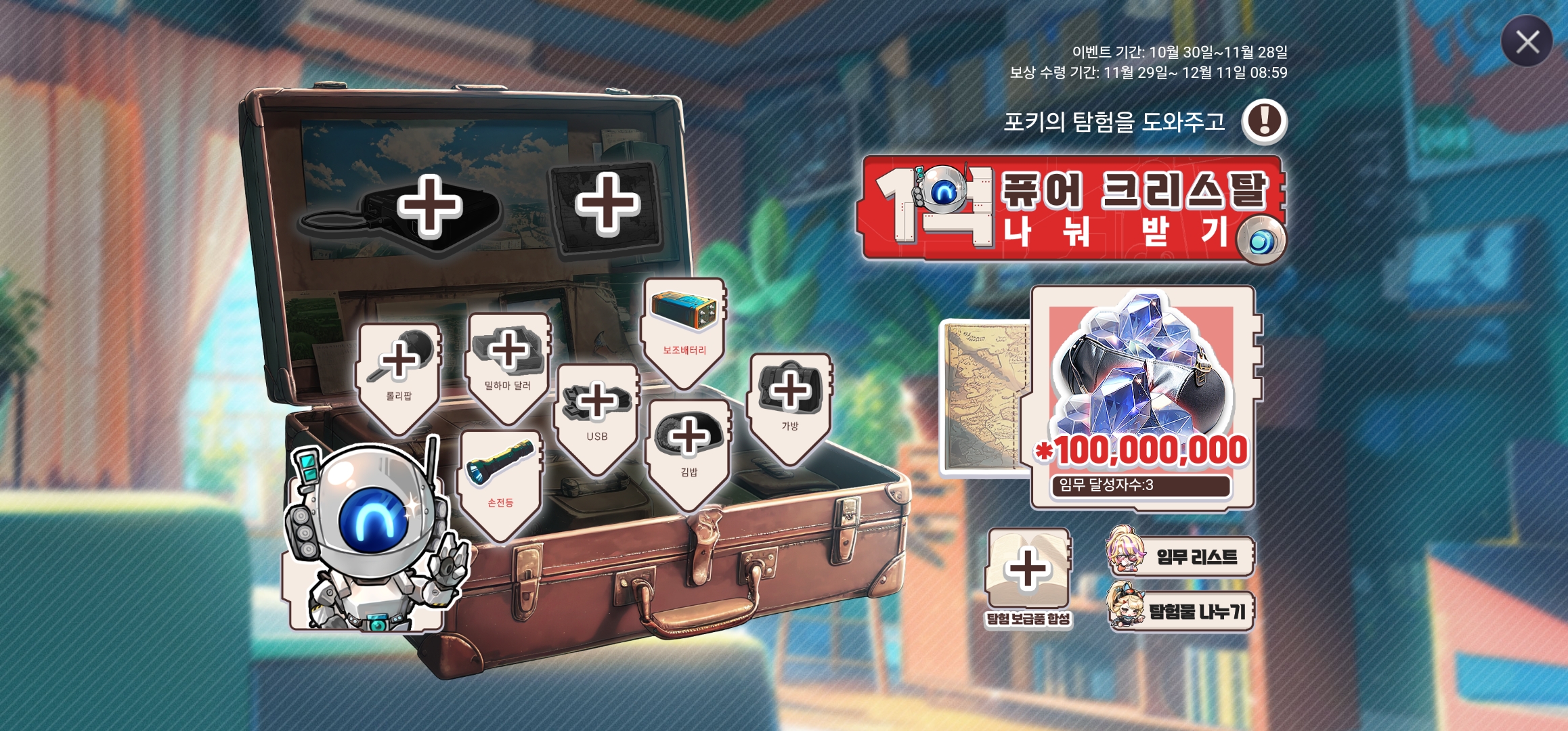 마지막으로 소개해 드릴 메카아라시 보상은 1억 퓨어 크리스탈 나눠받기 입니다.