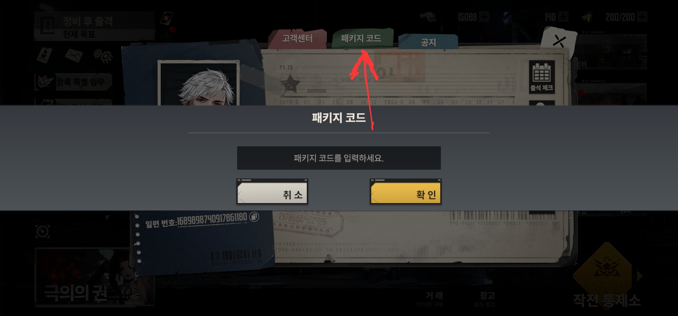 패키지 코드 클릭하고 쿠폰번호 입력