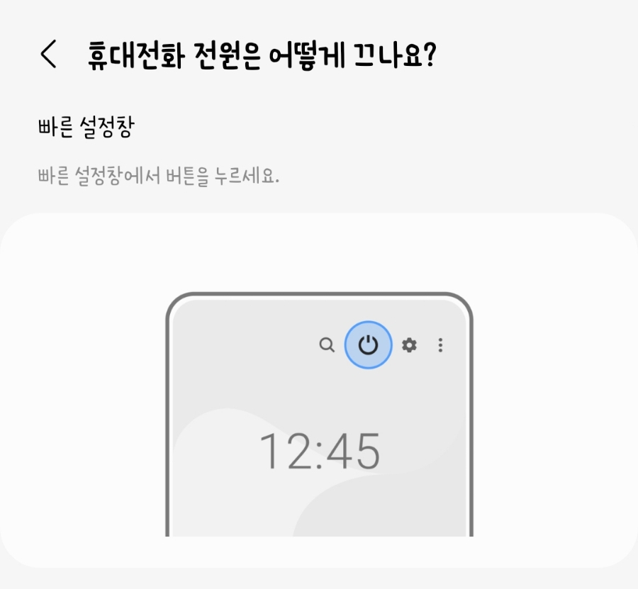 입력 전원 끄는 법은 3가지 방법이 있습니다. 화면을 위에서 아래로 쓸어내리면 빠른 설정 창이 나오는데 거기서 전원 버튼을 클릭하면 전원을 끌 수 있습니다.