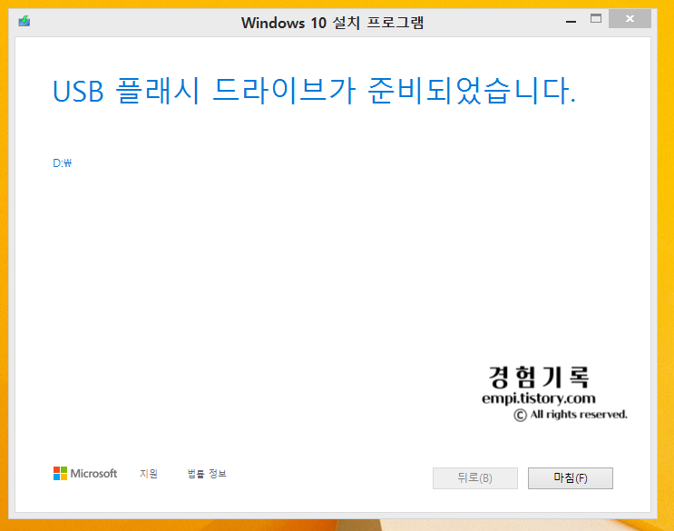 완료되면 USB 플래시 드라이브가 준비되었습니다. 라고 뜹니다