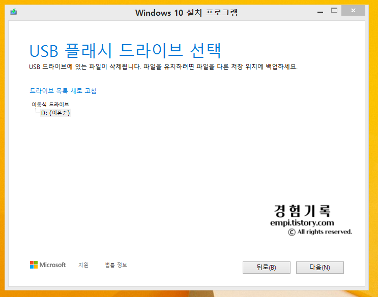 USB 플래시 드라이브를 선택합니다. 저는 8GB USB를 사용 했습니다.