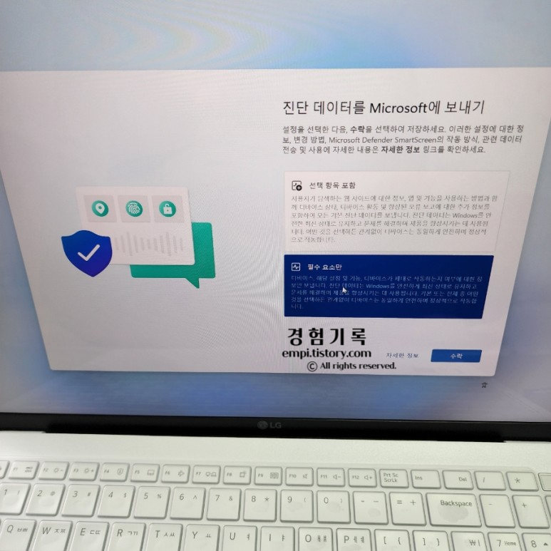 진단 데이터는 필수 요소만 선택 합니다. (여기서 부터는 딱히 정답이 없는 선택지 입니다. 본인의 사용에 맞춰서 선택 하시면 됩니다)