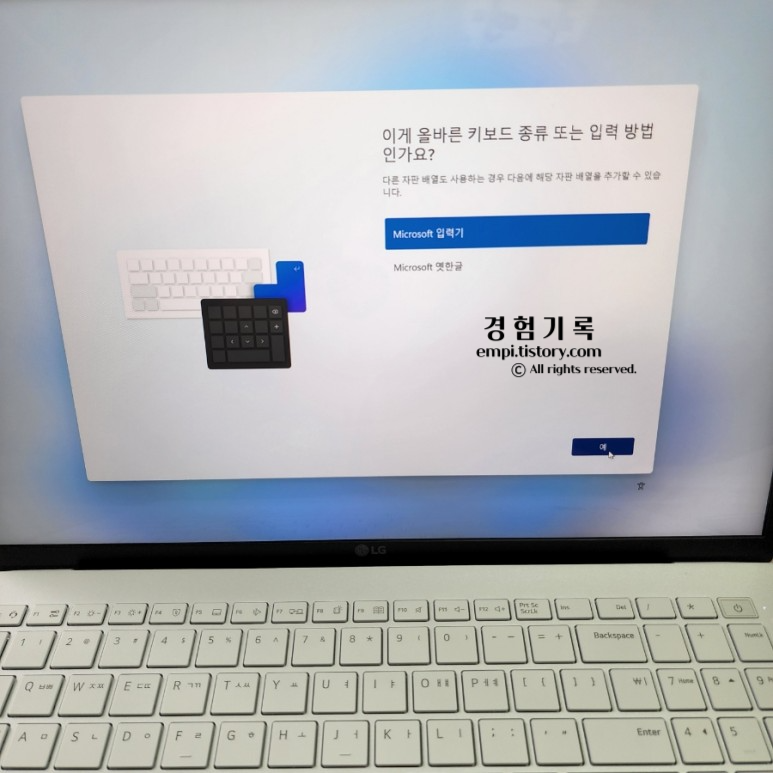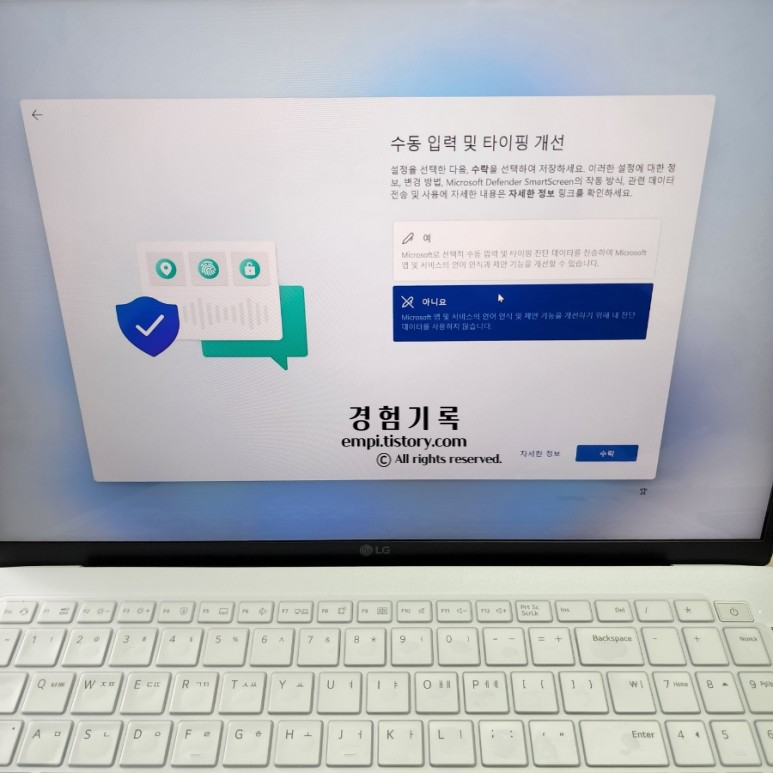 수동 입력 및 타이핑 개선은 아니요로 했습니다. 예를 해도 무방 합니다.