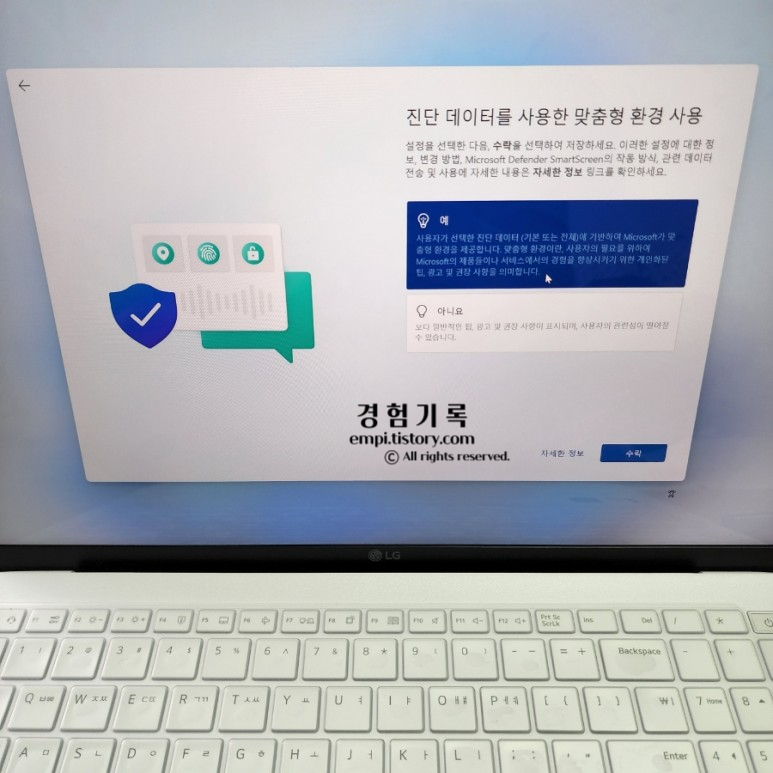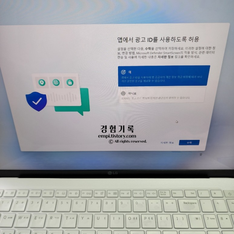 예를 하면 보다 개인설정된 광고가 나옵니다. 저는 예를 했는데 아니요도 무방합니다.