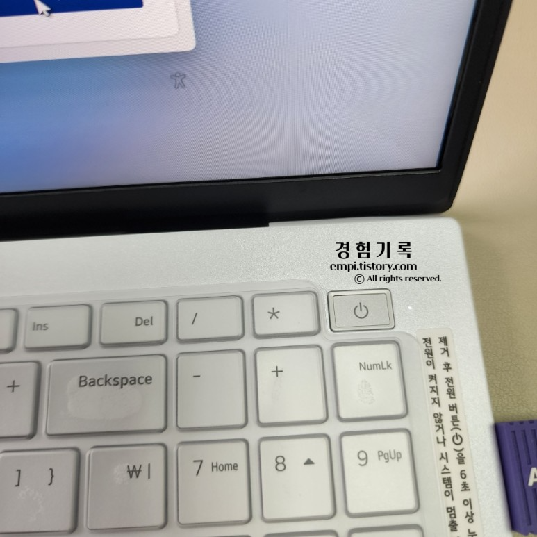 맨 위에 전원버튼에 손가락을 올리면 됩니다. 전원 버튼을 절대 누르시면 안됩니다. 그럼 설치 하면서 전원이 꺼져서 알 수 없는 오류가 생길 수가 있습니다.