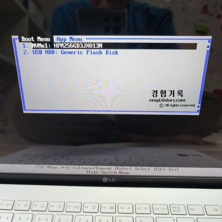 그럼 윈도우 11 설치 USB가 준비되었다는 전제하에 설치 진행 하겠습니다. USB를 꽂아 두고 노트북 전원을 켭니다. 그리고 곧바로 f10을 계속 눌러 줍니다. 그러면 부트 메뉴가 나타납니다.