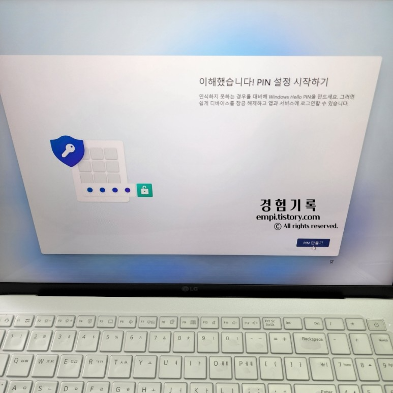 pin설정도 해주시기 바랍니다. 지문 인식이 안될 경우 pin으로 로그인 해야 합니다.