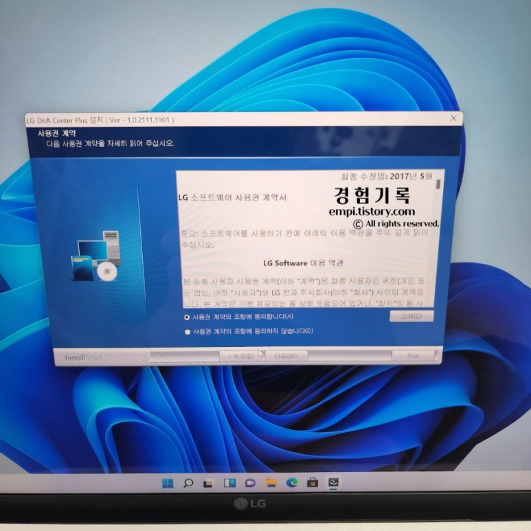 딱히 실행하지 않아도 엘지그램 16은 아래와 같이 드라이버 설치를 위한 dna center plus 설치 화면이 뜹니다. 취소 하지 마시고 꼭 필요한 프로그램이니 설치 하시기 바랍니다.