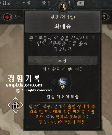 맵에 보면은 위상을 획득 가능한 던전이 보입니다. 해당 던전을 완료하게 되면 힘의 위상을 얻게 됩니다. 전 야만용사로 플레이 했는데, 야만용사 전용 위상이 보여서 취득해 보려고 합니다. 해당 위상은 야만용사 분쇄 스킬을 사용하면 작동하는 위상 입니다.