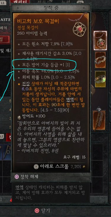 제가 가지고 있는 아이템은 모든 방어 기술 등급 +1 로 제가 스킬을 습득 하지 않았지만, 해당 아이템 착용만으로 모든 방어 기술이 사용 가능하게 활성화가 되었습니다.