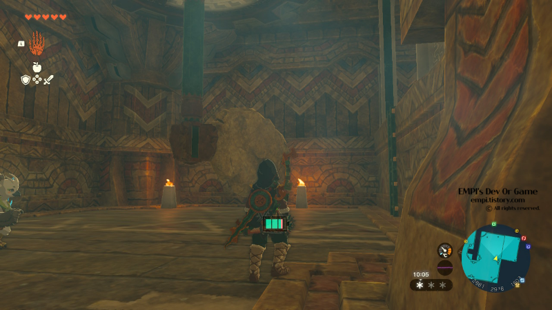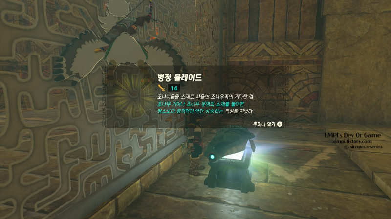 근처 보물 상자에서 병정 블레이드를 얻을 수 있습니다. 여기서 트레루프를 이용하여 위로 올라 갑니다. 그럼 바람의 신전 1층으로 갈 수가 있습니다.