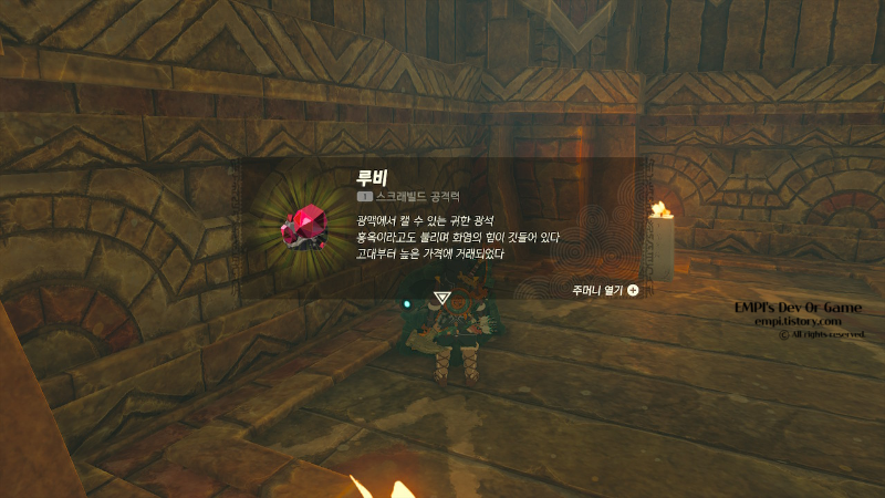 근처에 벽돌이 쌓여 있는데, 걷어 내면 보물 상자가 나옵니다.