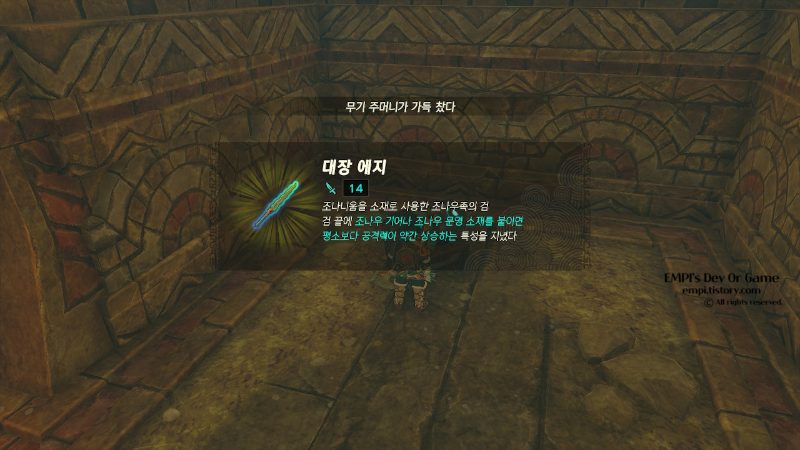 조나니움을 이용해서 만든 조나우족의 검 대장 에지를 얻었습니다.