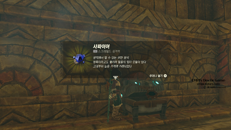 사파이어를 얻었습니다. 힘들게 들어온 보람이 있네요.